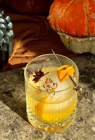 ● Añade Buchanan’s Deluxe, el jugo de mandarina, la esencia de azahar, el anís estrella y un hielo grande.