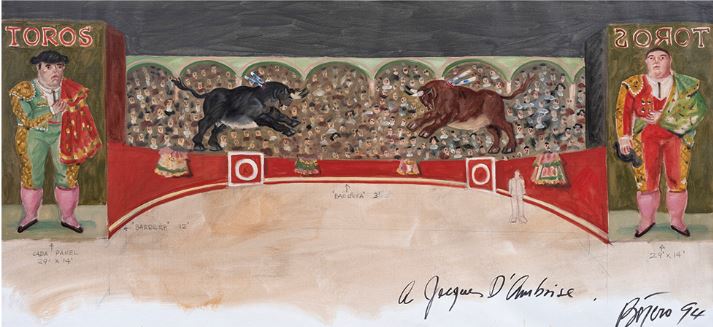 Se podrá observar una obre de Fernando Botero, el célebre artista colombiano. Se trata de un diseño de fondo de telón para la obra «Carmen».