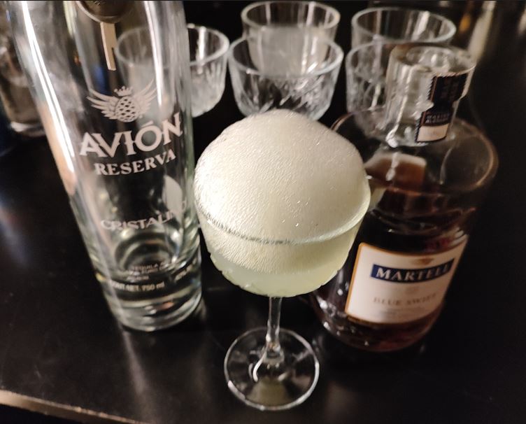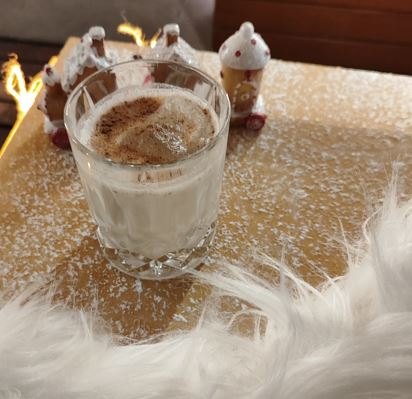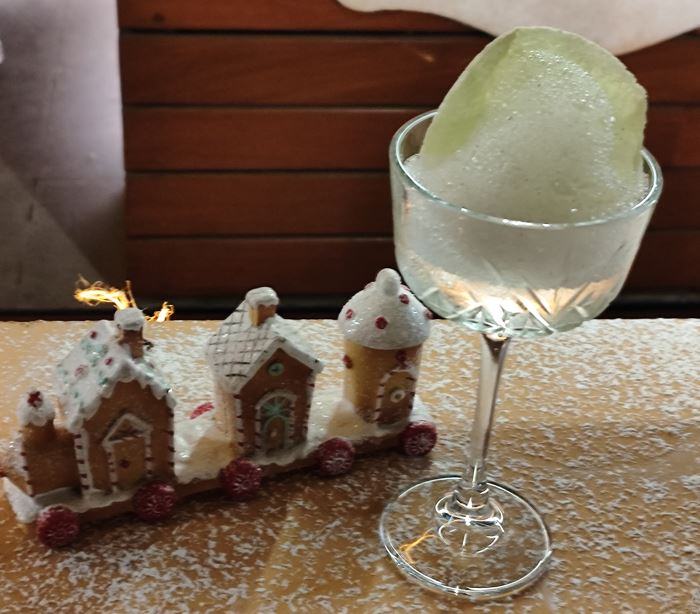 El Sr. Gingerbread Snowman te ofrece un fresco coctel con Tequila Avión Cristalino, limón clarificado y jarabe, adornado con una espuma que evoca la neblina del bosque.