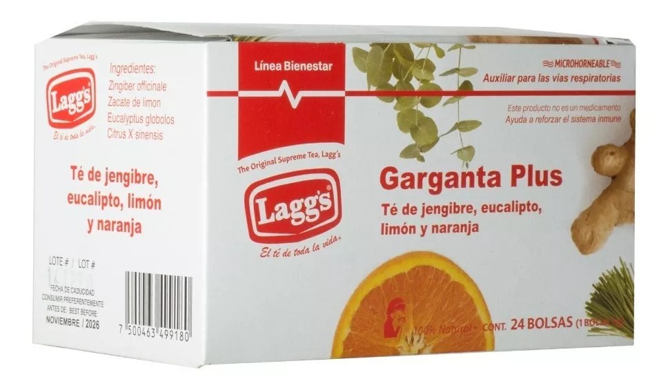 En particular, los tés herbales como el «Té Garganta Plus» de la marca mexicana Lagg’s, con sus deliciosos sabores de jengibre, eucalipto, limón y naranja, pueden brindar alivio efectivo para el dolor de garganta. Aquí te explicamos cómo: