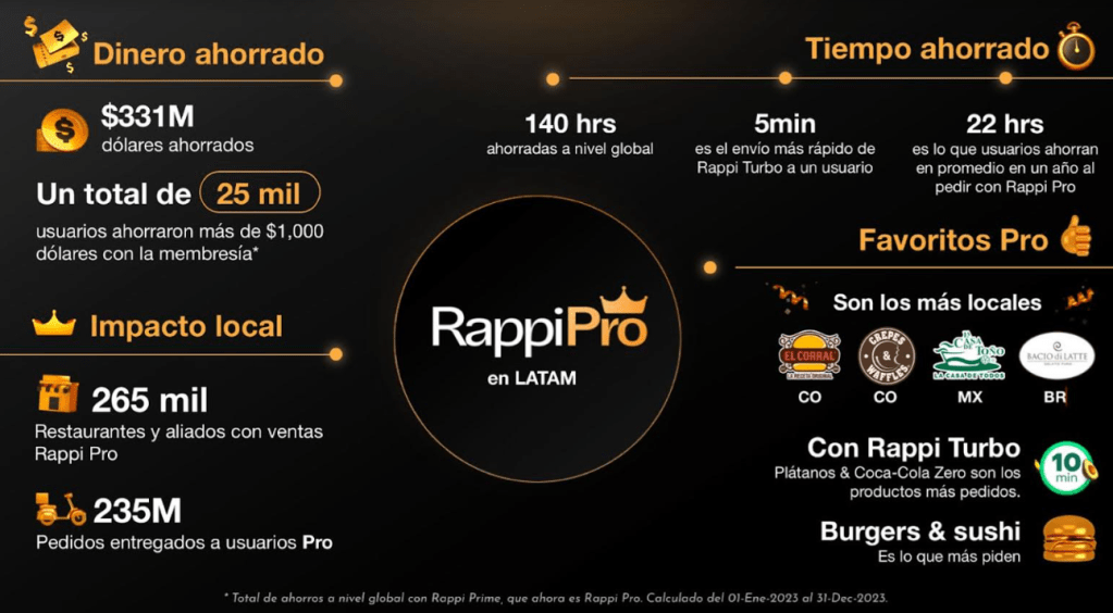 En México, tan solo en el 2023, el 60% de los usuarios de Rappi disfrutaron de su programa de membresía, realizando más de 37 millones de órdenes y ahorrando más de 110 mil dólares aproximadamente. Entre los restaurantes favoritos de los usuarios suscritos a la membresía se encuentran Little Caesars, McDonald ‘s, y Starbucks.