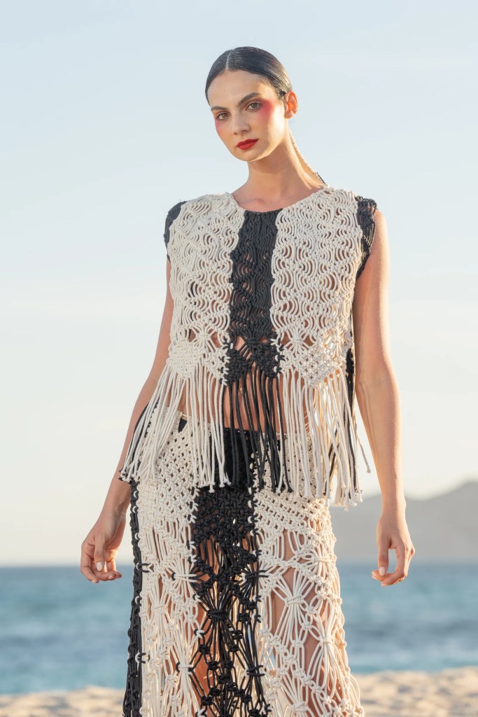 Kris Goyri presenta su Colección Resort 25. Una experimentación arquitectónica de cortes geométricos y construcciones orgánicas. La colección se basa en el destino de las piezas, “La vacación” una semblanza de piezas de viaje que visten de manera fácil, conviven entre estructuras simples y angulares, llena de detalles y nuevos volúmenes, entre blancos y negros que definen un contraste de pureza elemental.