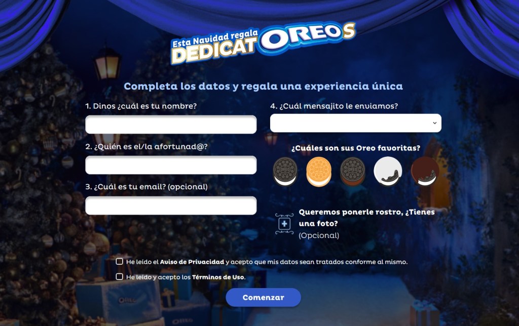 Pero no solo el video es increíble, puedes personalizarlo y enviarlo a tus seres queridos. Es muy fácil, solo tienes que ingresar acá: https://navidad.oreo.mx para poner tu nombre y tu mensaje personalizado.