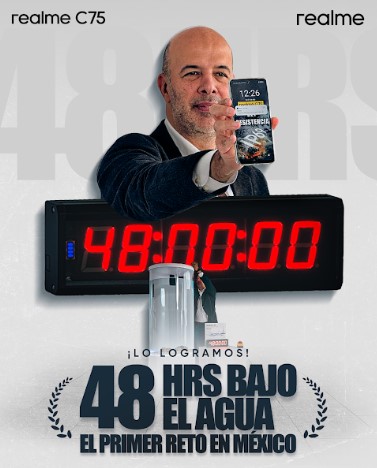 realme ha hecho historia al convertirse en la primera marca de la industria en realizar un reto de resistencia extrema en vivo, en el que su nuevo modelo el realme C75 ha superado 48 horas sumergido en un tanque de agua, una hazaña nunca antes vista.