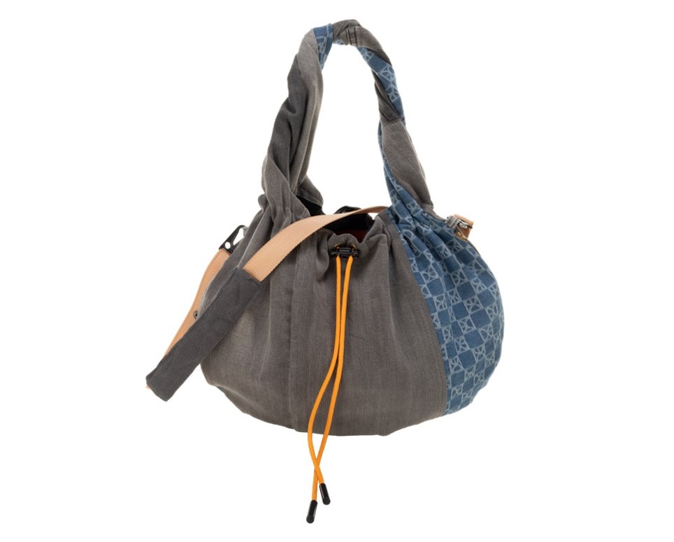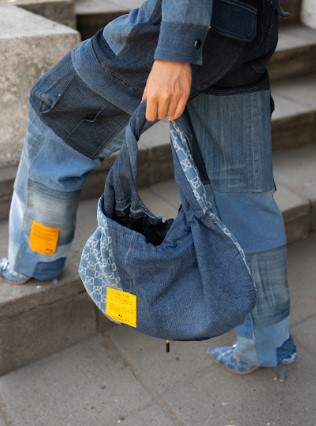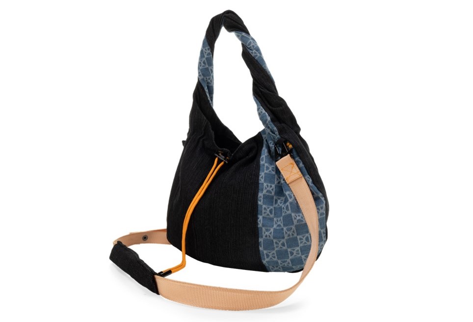 El bolso hobbo de esta colección está elaborado con materiales reutilizados de