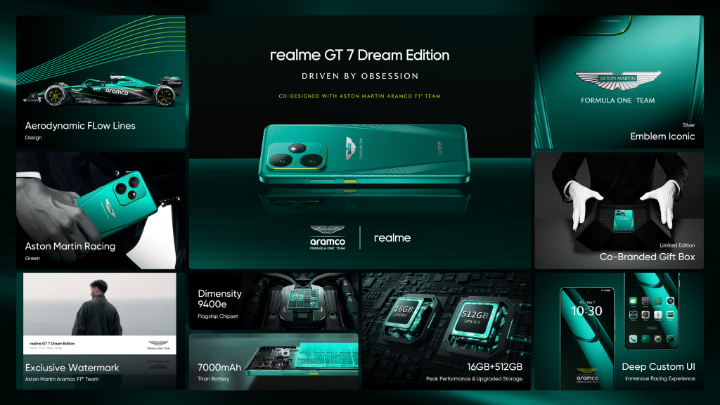 El realme GT 7 Dream Edition, desarrollado en colaboración con Aston Martin
