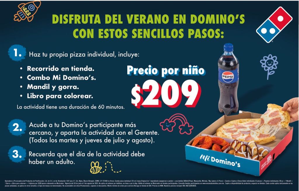 Esta temporada vacacional, Domino’s, una de las cadenas de pizza más grandes e innovadoras en México, lo hace posible con su Verano Dominiños, una promoción donde sus consumidores más peques podrán preparar su propia pizza individual, que se incluirá junto con un combo Mi Domino’s en una experiencia única y divertida para disfrutar de las vacaciones en familia.