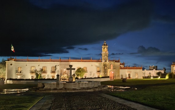 El festejo «Viva México» se llevó a cabo en la hacienda, que recibió a los invitados hacia la noche, con una iluminación de ensueño que la hace lucir aún más bella. Al llegar fuimos recibidos en el patio central del edificio principal de la hacienda, donde pudimos degustar coctelería preparada con tequila Reserva de la Familia, mientras observábamos a varios charros hacer algunas suertes con reatas, desde algunos muy jovencitos hasta otros más experimentados.