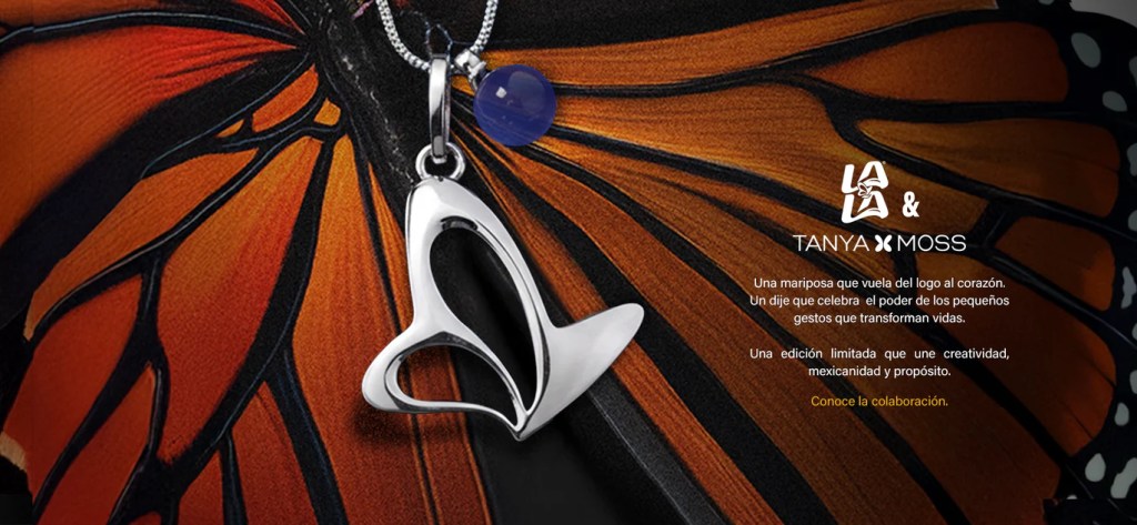 El collar se compone de un dije de una mariposa de plata idéntica a la del logo de Lala, con su cadena de plata. Como un lindo detalle adicional, lleva una cuenta de piedra Sodalita en tono azul, que representa «la verdad, la intuición y la fuerza interior». La joya es «un diseño con alma mexicana que no solo embellece, sino que también ayuda a cambiar vidas».