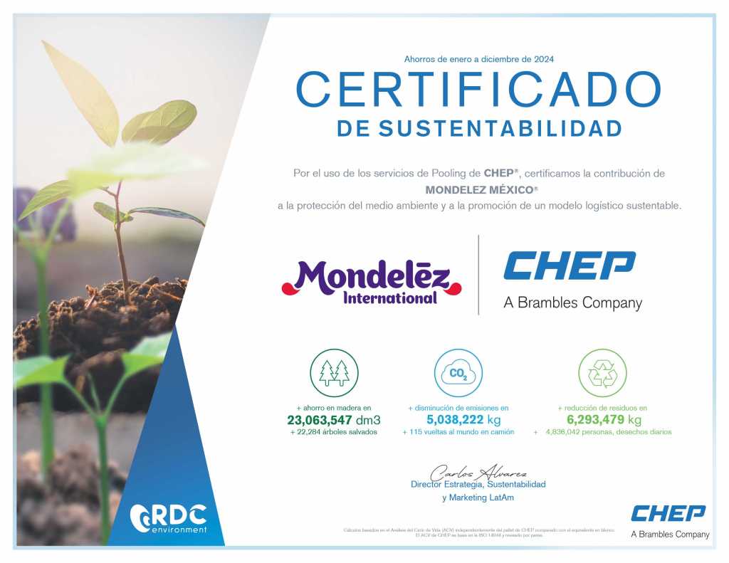 Gracias a esta alianza, CHEP entregó recientemente a Mondelēz México su Certificado de Sostenibilidad, un reflejo de los esfuerzos de circularidad que la compañía realiza a nivel global en toda su cadena de producción.