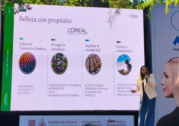 Enseguida tomó la palabra, Araceli Becerril Directora de Responsabilidad Corporativa del Grupo L’Oréal. «Me da mucho gusto ver casa llena y sobre todo, no saben la emoción a nombre de L’Oréal y de manera personal, que llegó este día, que es muy importante para nosotros. Estamos felices de poder tener este tipo de aliados, es una fuerza poderosa que nos une. Una fuerza que puede utilizarse para ayudar a preservar nuestro mundo. Por eso, creamos la belleza que utiliza un 78% de envases de plástico PET procedentes de fuentes recicladas. Y el 61% de nuestros ingredientes naturales son de base biológica o derivados de minerales abundantes; belleza que se preocupa por alcanzar el 100% de neutralidad de carbono en todos nuestros sitios de aquí a 2025. Belleza que protege el planeta restaurando 1,000,000 de hectáreas. Y Reciclando el 100% de nuestras aguas industriales para 2030. Uno de los grandes objetivos de crear la belleza que mueve al mundo es proteger la belleza de nuestro planeta. Y déjenme decirles que esto no es algo nuevo. Desde los setentas fuimos de las primeras empresas en que empezamos a trabajar con laboratorios que hoy son parte de nuestra operación, en donde a través de piel real que se compra en bancos, recreamos piel artificial que se llama picking y es ahí en donde hacemos las pruebas de nuestros productos. Desde los años setentas no testeados en animales. Fuimos de las primeras empresas en crear objetivos basados en ciencia, que es nuestra ruta 2030 en materia de Sustentabilidad. Los científicos definieron cuáles son los límites planetarios y cuáles no deberíamos de traspasar para que la vida como la conocemos permanezca».