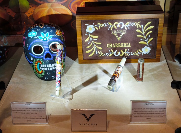 - Charrería: diseñada por Visconti, representando el vínculo que une al charro con su caballo. Captura cuero, hebillas, reata y arena convertidas en elegancia. Escribir con ella es sentir el giro de la suertes charras. Elaborada en resina, marfil, cuero y plata de ley. 149 piezas tiene esta edición limitada y numerada.
