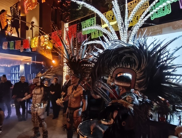 Esta grandiosa celebración fue complementada con la presencia de artistas mexicanos que interpretaron danzas de ti prehispánico con elaborados e impresionantes trajes; un conjunto de Son Jarocho que deleitó a los asistentes y no podía faltar, en el clímax de la noche, la llegada de los mariachis que encantó a todos. Asimismo pudimos disfrutar de diversos platillos mexicanos