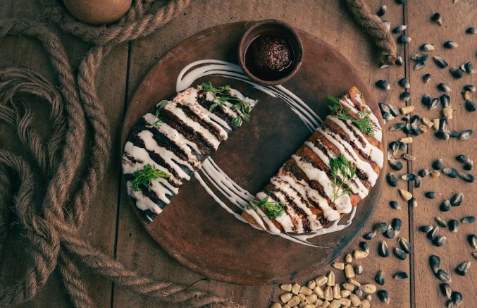 ● Plato fuerte: pescado del Pacífico envuelto en hoja santa y pipián verde con