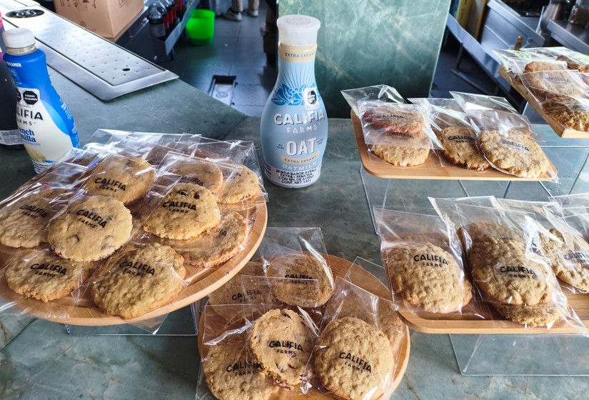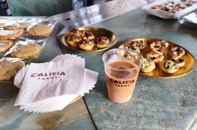 Califia Farms invito a gran cantidad de influencers y medios de comunicación para degustar sus productos, en una divertida Coffee Party donde degustamos deliciosos cafés fríos o calientes, con el toque de sus productos. Pudimos degustar bocadillos de hongos y de espinacas, preparados con leche de almendras, también galletas preparadas con leche de avena. Todos los alimentos estaban muy ricos y con texturas digamos «normales», aunque no tenían ingredientes lácteos.