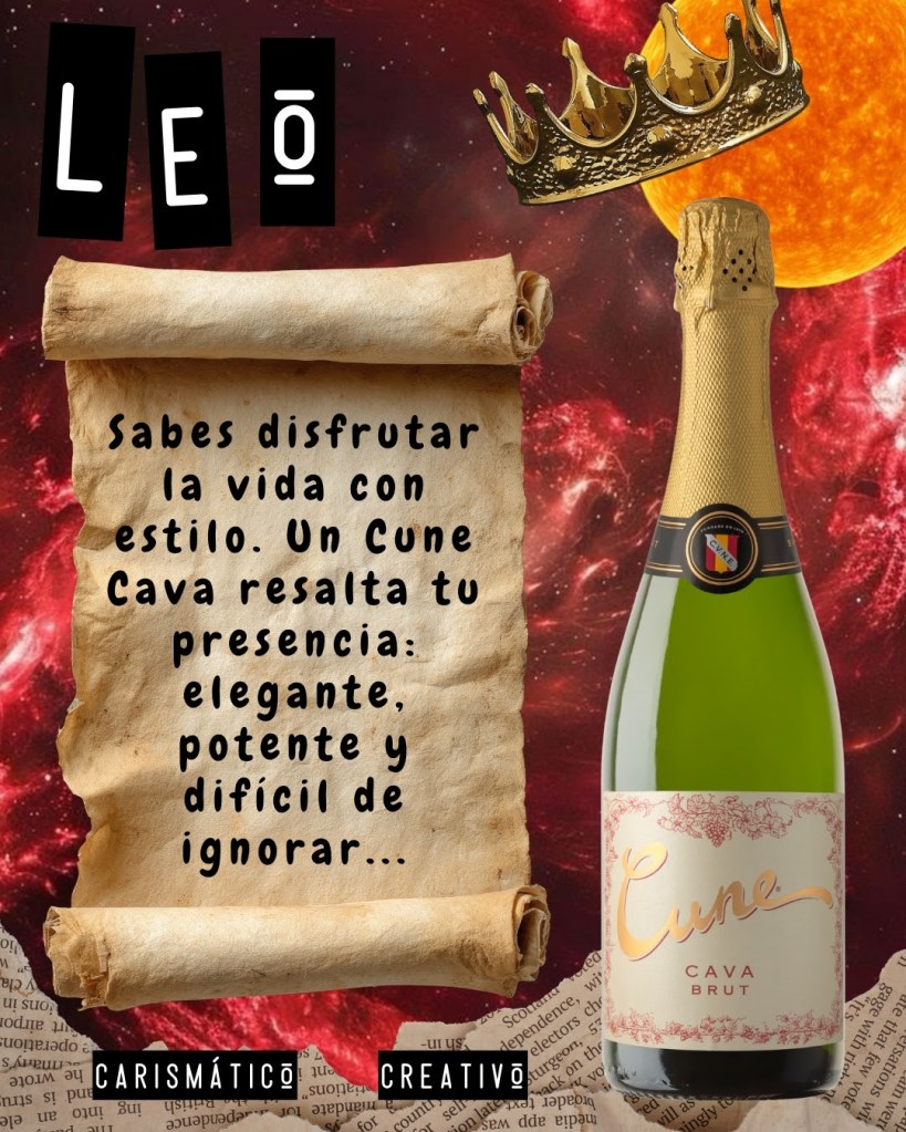 LEO: El más carismático, creativo y amante de los reflectores; sabes disfrutar la vida con estilo. Un Cune Cava resalta tu presencia: elegante, potente y difícil de ignorar.