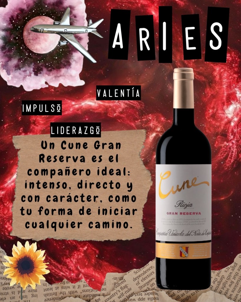 ARIES: Para ti, que te mueves por impulso, valentía y liderazgo, un Cune Gran Reserva es el compañero ideal: intenso, directo y con carácter, como tu forma de iniciar cualquier camino.