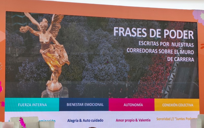 Posteriormente, Gustavo Lara Vicepresidente de marketing de Danone México, comentó que, el impacto que dejan en México es algo que los hace sentir orgullosos. Relató cómo se reinventaron para este año, hay un muro donde las participantes escriben lo que las motiva a correr. Esto se convierte en frases de poder, y al analizarlas, encontraron que se pueden agrupar en 4 conceptos: fuerza interna, bienestar emocional, autonomía y conexión colectiva. A partir de esas frases se crearon 6 etiquetas muy coloridas que estarán en las botellas de Bonafont a mediados de febrero: «LA RESILIENCIA ES MI FUEGO», «SOY MI PROYECTO», «ELIJO MI DESTINO», «FLUYE CON FUERZA», «AVANZA HACIA TUS SUEÑOS», «FLUYE CON FUERZA». Todas ellas decoradas por la talentosa artista Karen Espinoza. También crearon una bonita camiseta y una edición especial de tenis con la marca Reebok que en breve estarán a la venta. En el evento también estuvieron presentes Alana Flores, Karen Espinosa y Michelle Rodríguez, como embajadoras de la marca. Mujeres exitosas que apoyarán a las participantes.
