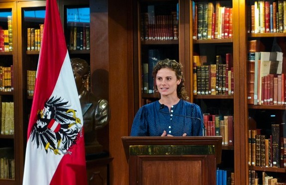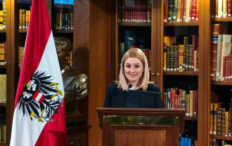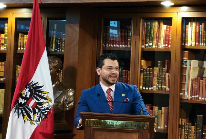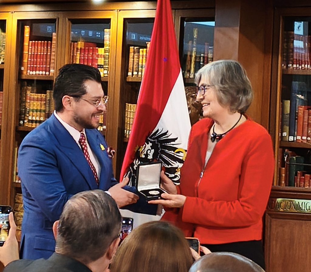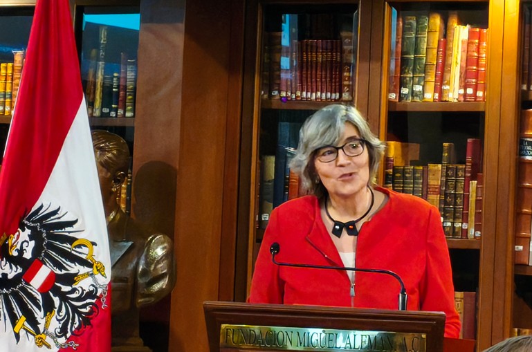Christian Carrillo-Puerto CEO Fundación Miguel Alemán dio la bienvenida y agradeció la presencia de los asistentes, sobre todo la de la Excma. Embajadora de Austria Elisabeth Kehrer y su equipo. A continuación, Christian Carrillo-Puerto procedió a reconocer a la Excma. Embajadora con la Medalla Miguel Alemán, por su importante trayectoria en el ámbito político y de relaciones internacionales en el Gobierno de la República de Austria. Y por la labor desempeñada en México durante su cargo. La Embajadora agradeció este reconocimiento comentando que dicha presea ha sido entregada a importantes personalidades de diferentes disciplinas, incluyendo al conocido científico Mario Molina. También comentó que ha disfrutado mucho su estancia en México y que los buenos resultados de su buena gestión se lograron con la colaboración de su equipo de trabajo. La Excma. Embajadora de Austria Elisabeth Kehrer mencionó la estrecha relación bilateral entre su país y México.