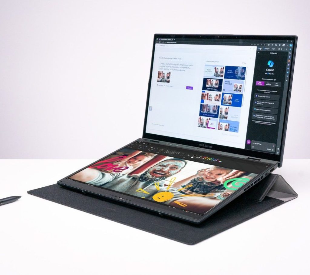 Para quienes buscan una solución más práctica y portátil, existen equipos que integran una segunda pantalla directamente en la laptop, como la línea ASUS Zenbook Duo de ASUS. Este tipo de dispositivos permite dividir tareas, extender ventanas y trabajar de forma más dinámica sin necesidad de un monitor externo, lo que resulta ideal para espacios reducidos o para quienes se mueven constantemente.